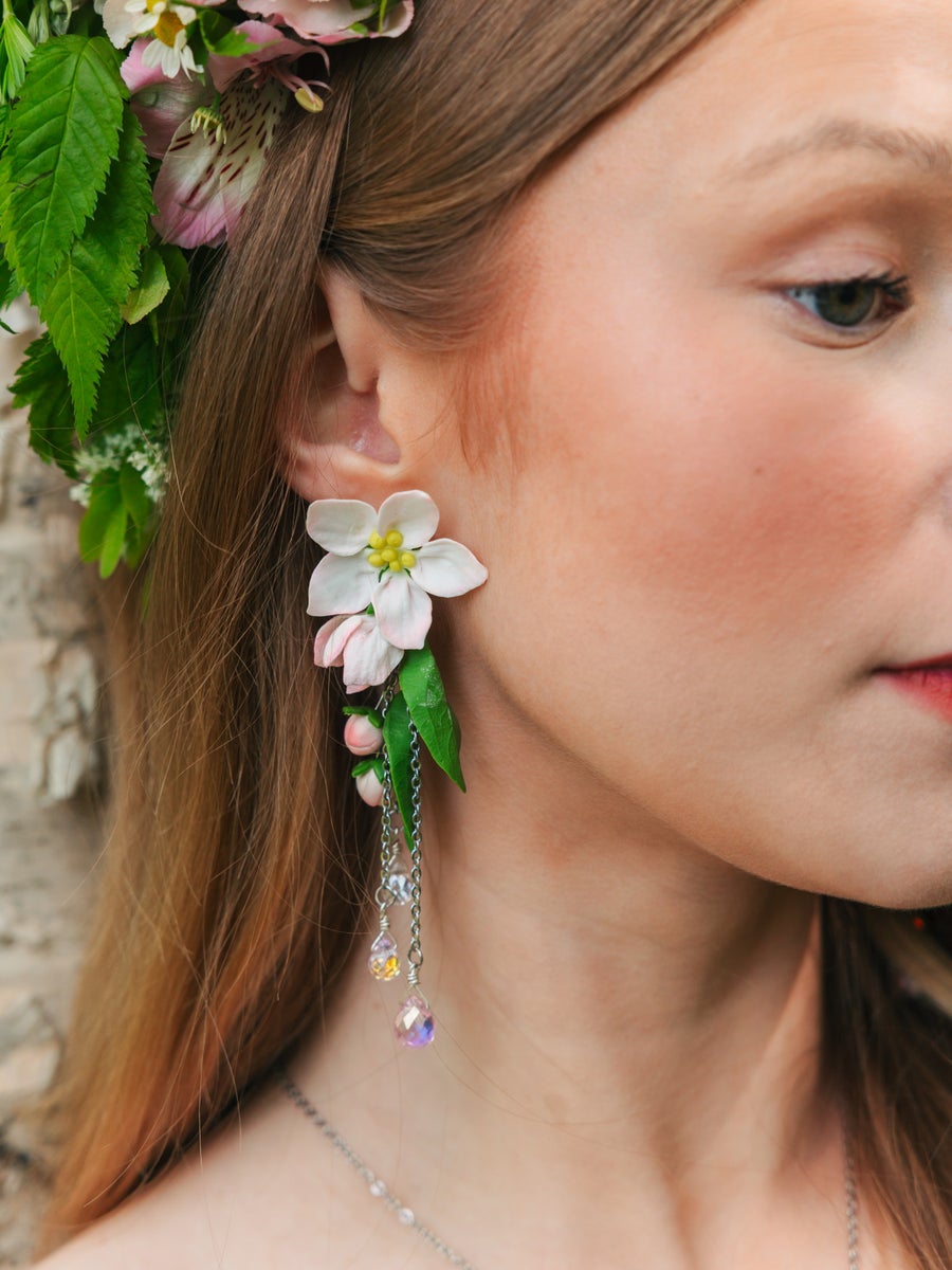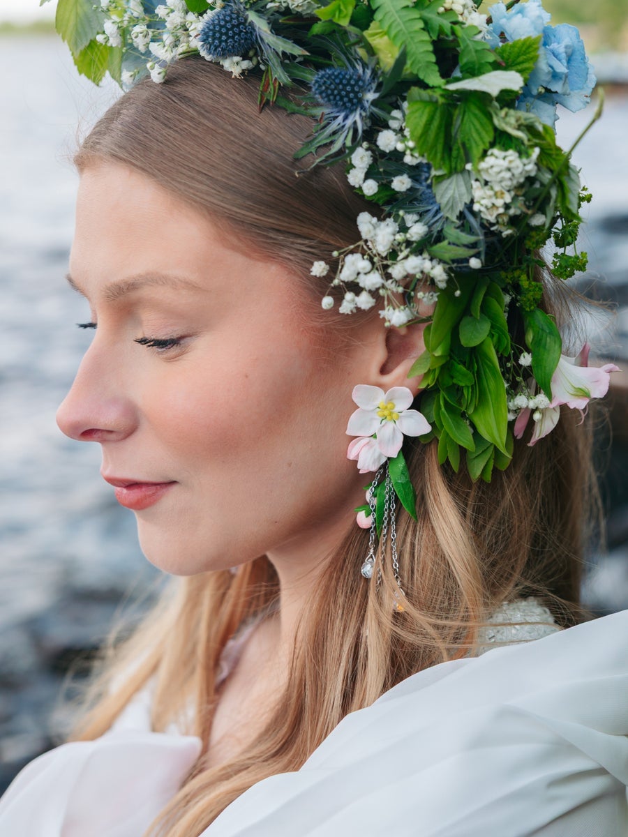 Käsin tehty. Polymeerimassa ja lasihelmet. Metalliosat ovat allergiaystävällistä kirurginterästä (nikkelitön) tai allergiaystävällistä 18K kullattua kirurginterästä (nikkelitön). Kaikki osat kestävät vettä.